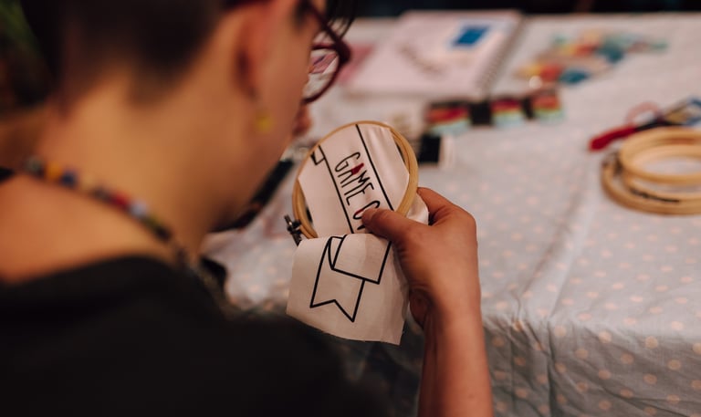 Je propose plusieurs types d'ateliers créatifs en lien avec le textile, l'upcycling, la couture et la broderie.